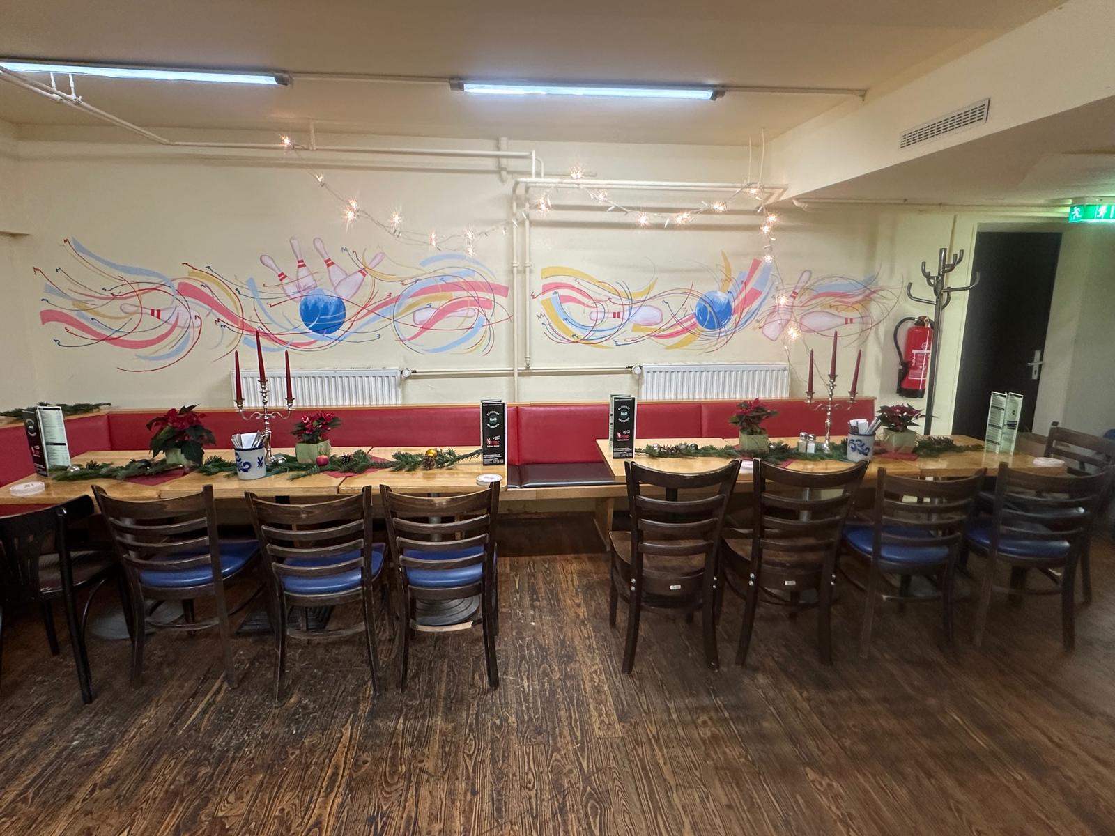 Bei uns können groß und klein oder auch jung und alt auf 2 Bowlingbahnen ihr Können unter Beweis stellen. Auf jeder Bahn können bis zu 8 Personen spielen. Hier heißt es Spaß für jedermann, ob Familien -, Geburtstags -, oder auch für Ihre Betriebsfeier. Für besondere Anlässe, können wir Ihnen ein individuelles Speiseangebot (Buffet, Snacks etc.) auf ihre Bedürfnisse zugeschnitten erstellen. Scheuen sie sich nicht uns zu kontaktieren. Wir beraten sie gerne!